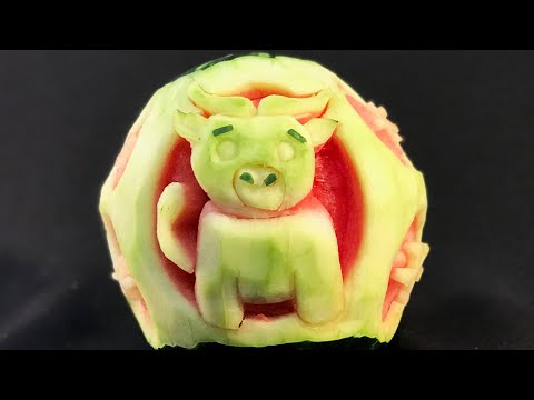Food artist Gus Smithhisler's 'Year of the Ox' Chinese New Year watermelon carving time-lapse video. Kawaii